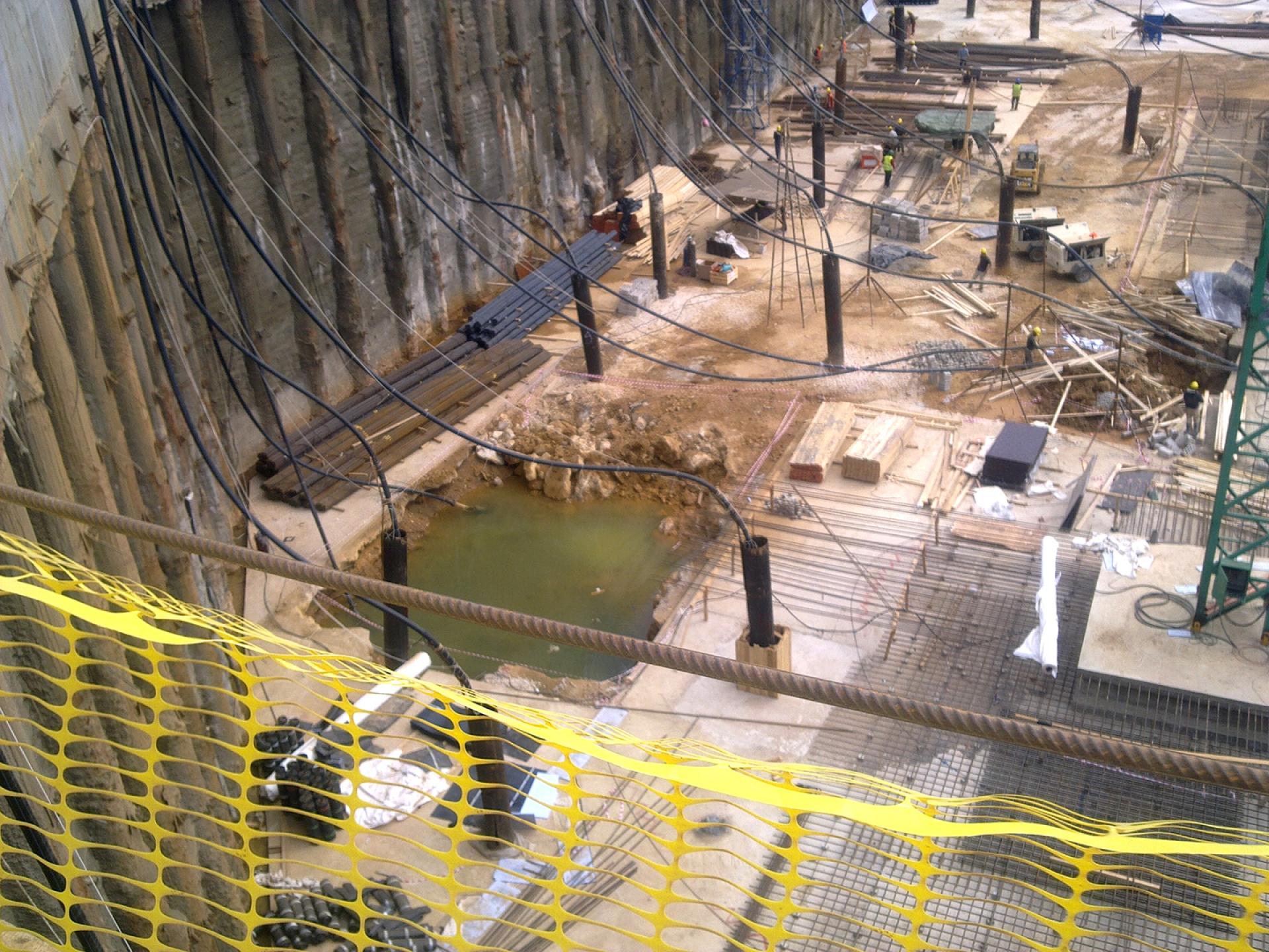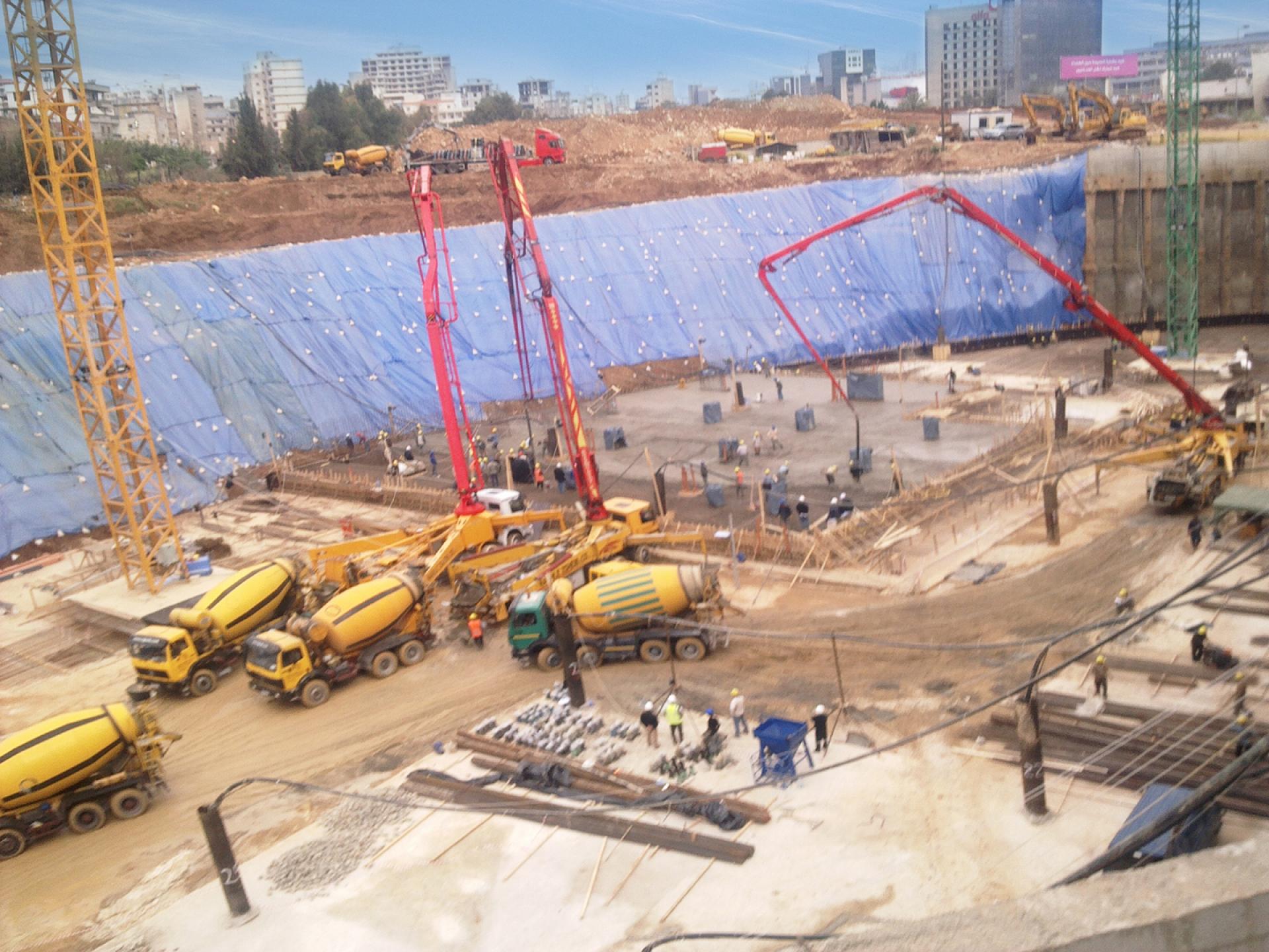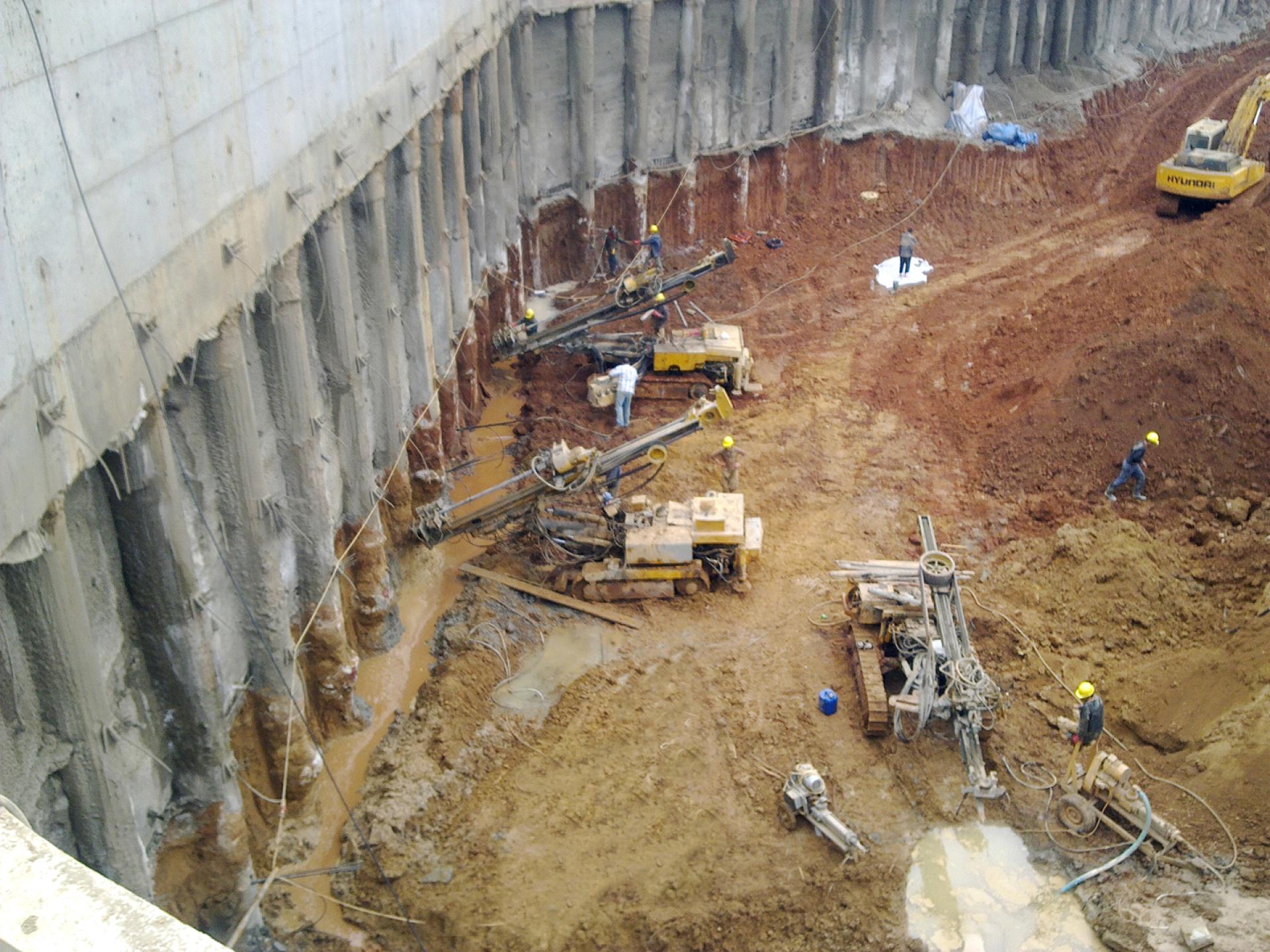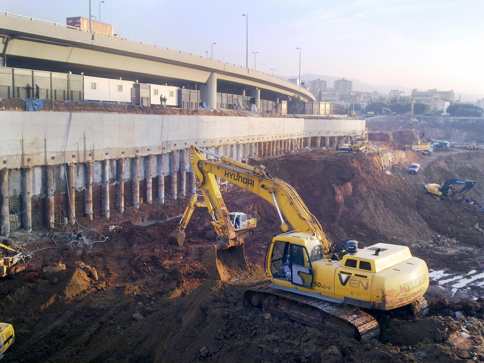 The BEIRUT CITY CENTER project consisted of shoring works, the excavation and removal of more than 600,000 m3 of material, the execution of secant and distance piles, the installation of anchors and shotcrete, the excavation of the natural ground level down to the excavation of the bottom levels, supplying and installing a continuous dewatering system, ground improvement, soil replacement, cavity probing, leveling and compaction and preparation of the site for concrete blinding.