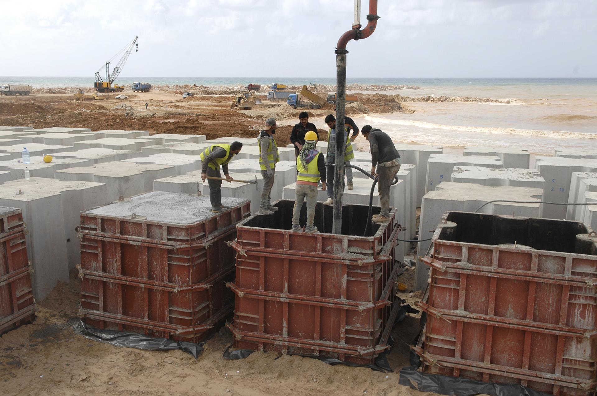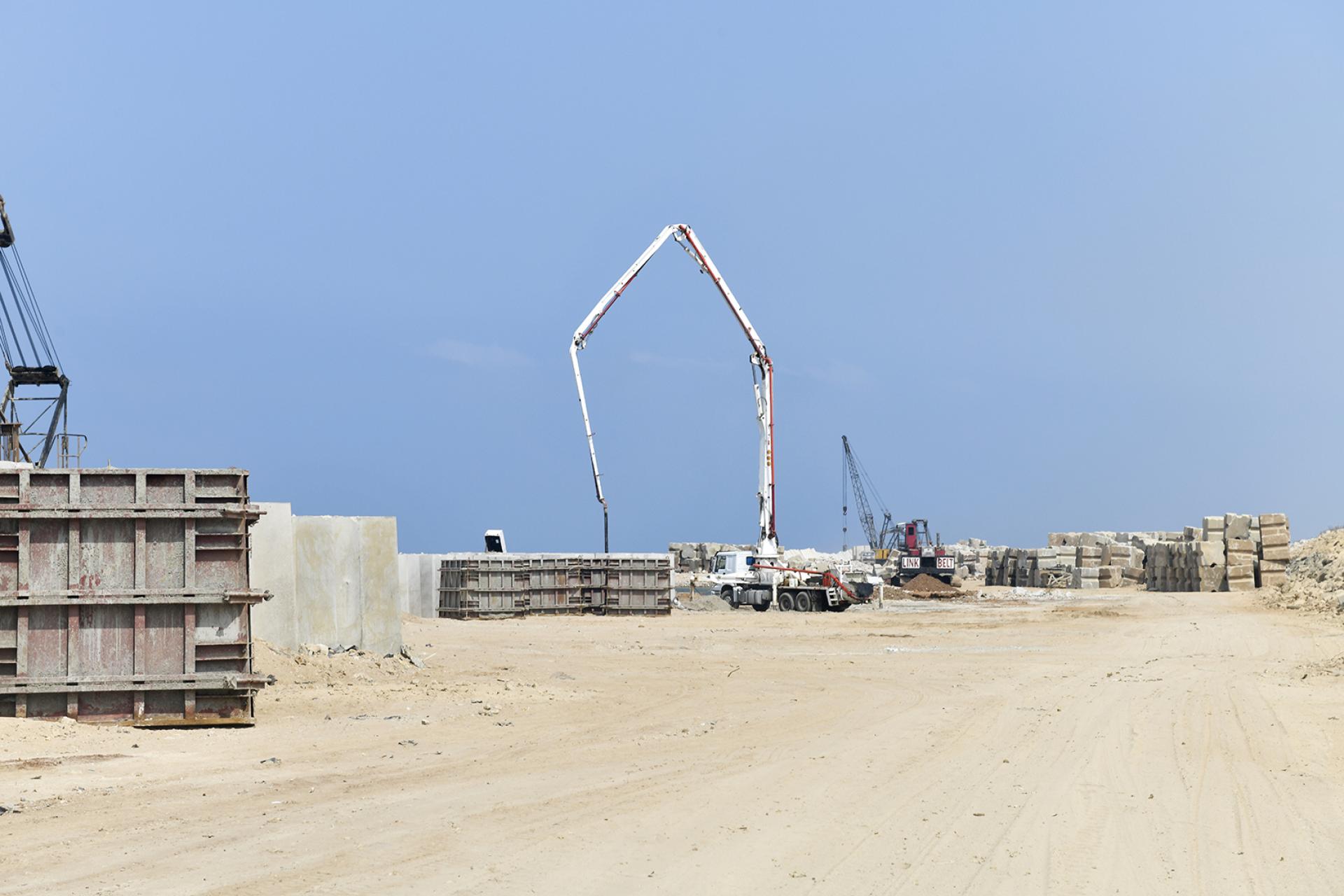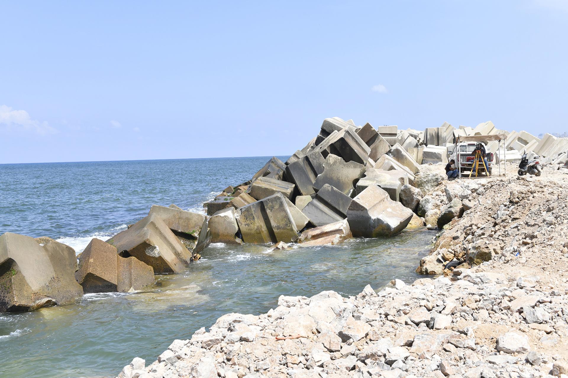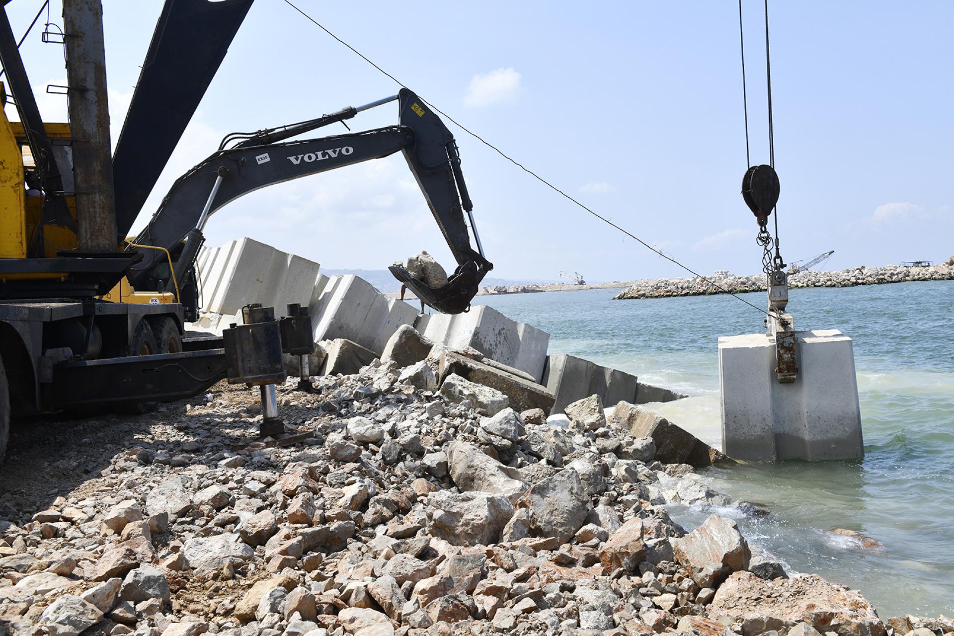 Primer's work at RAFIC HARIRI INTERNATIONAL AIRPORT involved the rehabilitation of the existing breakwater of the airport's runway (length 2.3 km) by increasing the top level of the breakwater, replacing the existing concrete blocks according to the new design and profile, removing broken blocks, casting and installing new concrete blocks with volumes ranging from 6.5 to 20.5 m3, installing rock layers and dredging soil underwater to ensure the designed draft level of the channel between the breakwater and the runway.