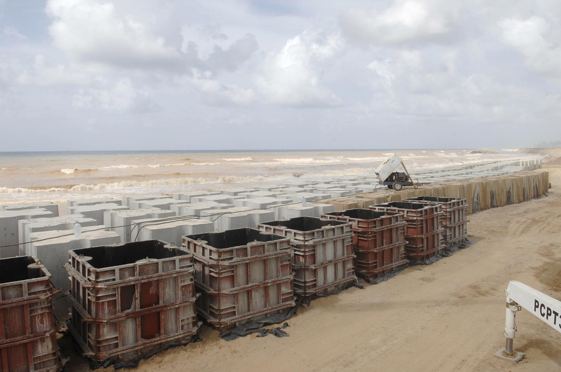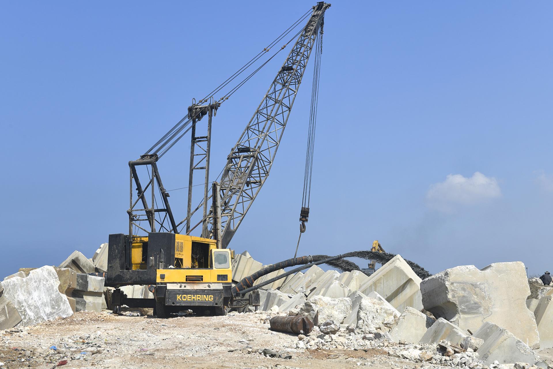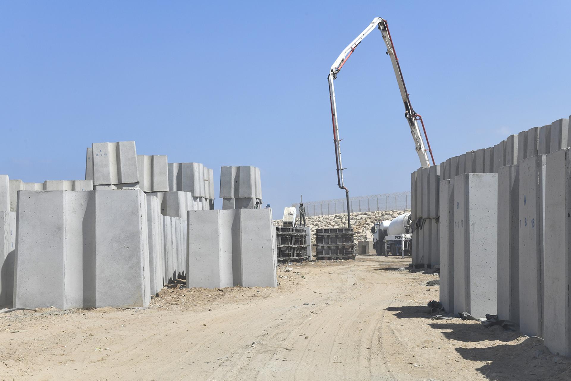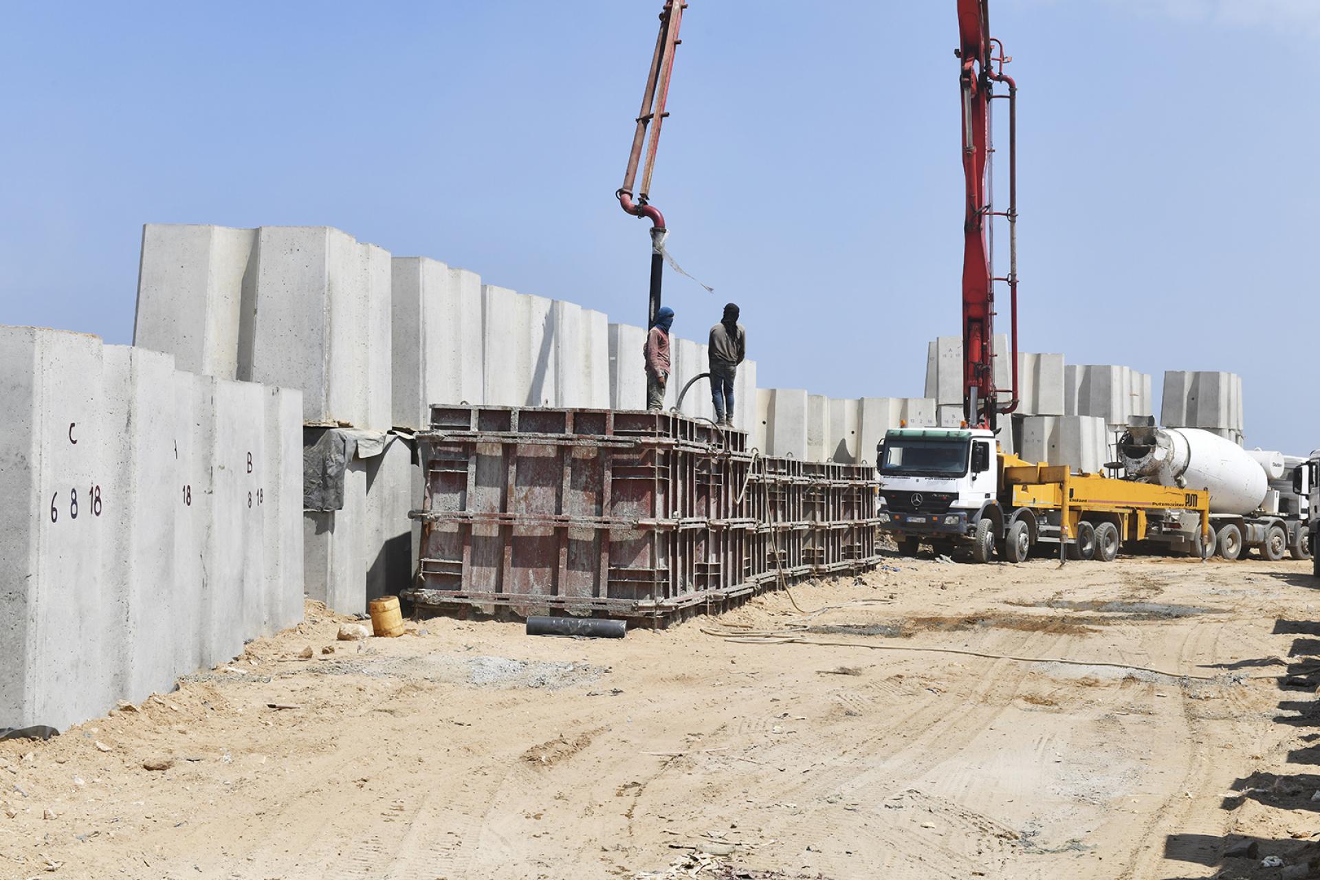 Primer's work at RAFIC HARIRI INTERNATIONAL AIRPORT involved the rehabilitation of the existing breakwater of the airport's runway (length 2.3 km) by increasing the top level of the breakwater, replacing the existing concrete blocks according to the new design and profile, removing broken blocks, casting and installing new concrete blocks with volumes ranging from 6.5 to 20.5 m3, installing rock layers and dredging soil underwater to ensure the designed draft level of the channel between the breakwater and the runway.